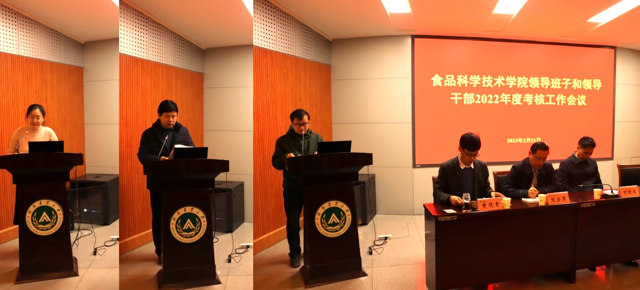 2月21日,食品科学技术学院在文化路校区大礼堂100人报告厅召开领导班子和领导干部2022年度考核工作会议。副校长刘晓永等考核组成员及院领导班子和全体教职工参加会议。学院党委书记赵改名主持会议。
