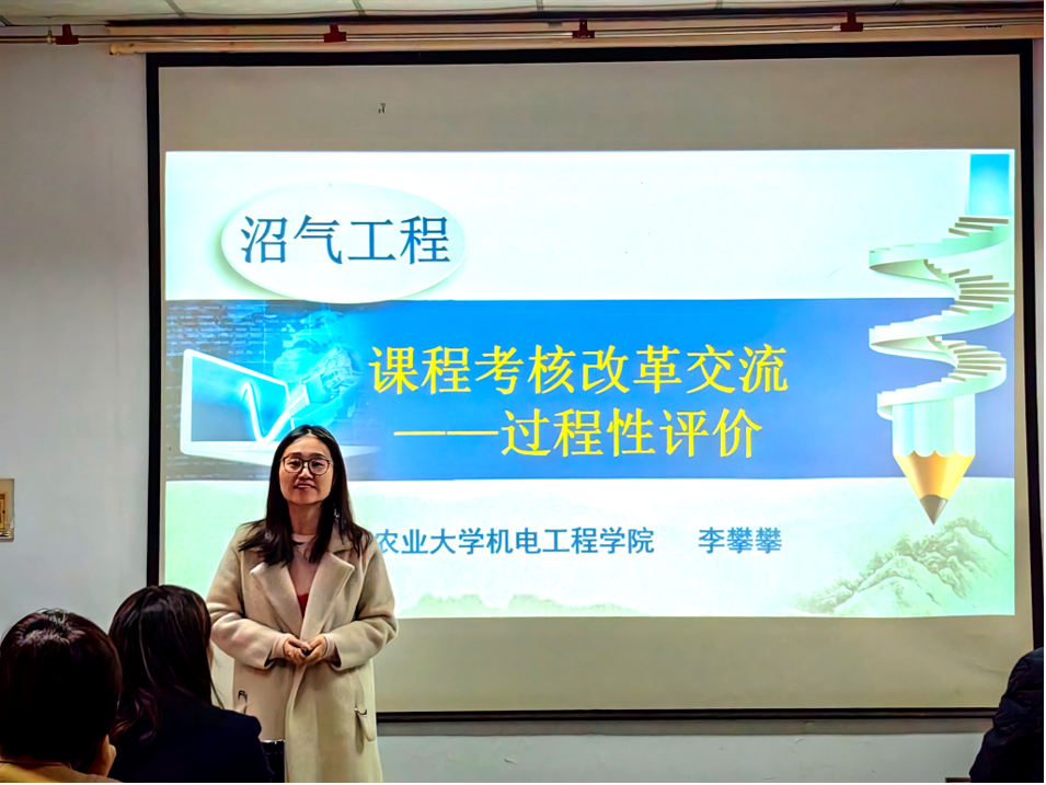 机电工程学院李攀攀老师以“以沼气工程为例的课程考核过程性评价改革”为题,从课程考核改革必要性、课程考核改革创新型、过程性评价的实施、课程考核结果分析、课程考核改革反思等五个方面向大家分享了课程考核改革经验和对于课程考核改革的思考。李攀攀老师丰富的教学经验为新进教师们提供了宝贵的指导和支持,新进教师们也将通过不断学习提升自己的教育教学水平。