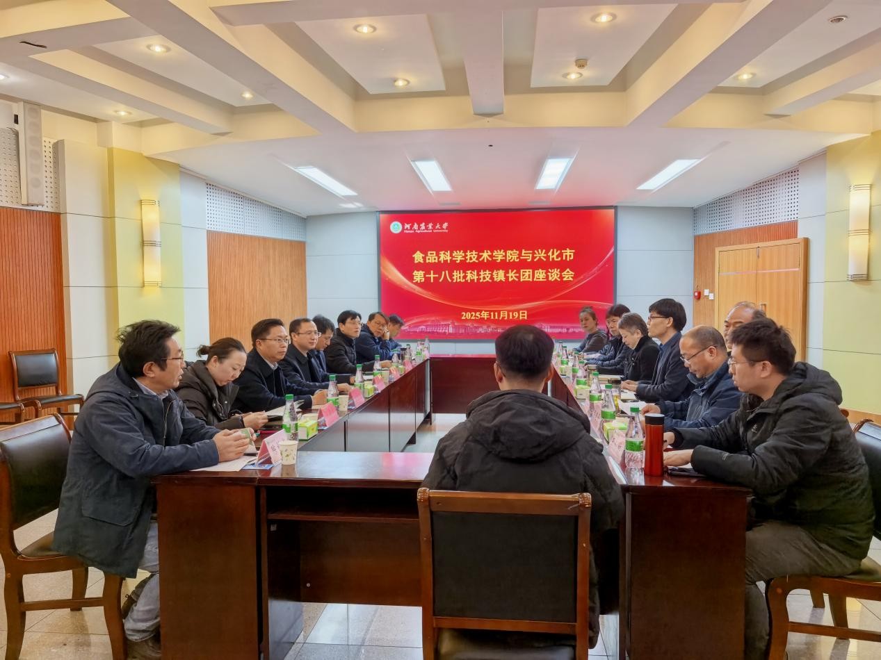 (通讯员 王洁)11月19日,江苏省农业农村厅兽医局副局长、兴化市政府党组成员、兴化市第十八批科技镇长团(泰州市健康食品产业团)团长华绪川率队访问河南农业大学食品科学技术学院,开展合作回访与深度对接。学院党委书记吴旭静、院长黄现青等领导班子成员、系室主要负责人及兴化市第十八批科技镇长团挂职教师出席会议。座谈会由院长黄现青主持。