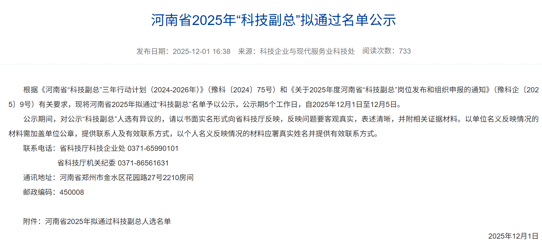 (通讯员 王洁)根据《河南省“科技副总”三年行动计划(2024-2026年)》(豫科〔2024〕75号)精神,食品科学技术学院认真组织开展了河南省2025年“科技副总”申报工作。经教师自主申报、属地科技管理部门初审合格后,通过系统推送至省科技厅。经省科技厅会同有关部门组织评审,全省共遴选确定“科技副总”1518人,其中我校共有130名教师入选。我院在本轮评选中表现突出,共有21名教师获任本年度“科技副总”。
