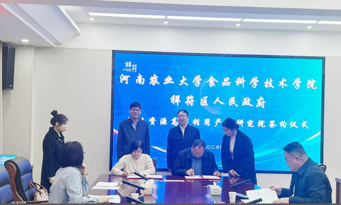 (通讯员 余秋颖)2025年12月9日,河南农业大学食品科学技术学院与祥符区人民政府共建“花生资源高值利用产业研究院”签约揭牌仪式在祥符区委东一楼会议室隆重举行。河南农业大学食品科学技术学院院长黄现青、河南农业大学教授、河南省花生产业技术体系岗位专家王娜教授、功能与健康食品团队核心成员余秋颖副教授、陈琳琳讲师等出席仪式。祥符区委副书记路营、副区长刘伟、政协副主席尚剑飞等区领导及相关部门、乡镇、企业代表共同见证这一重要时刻。