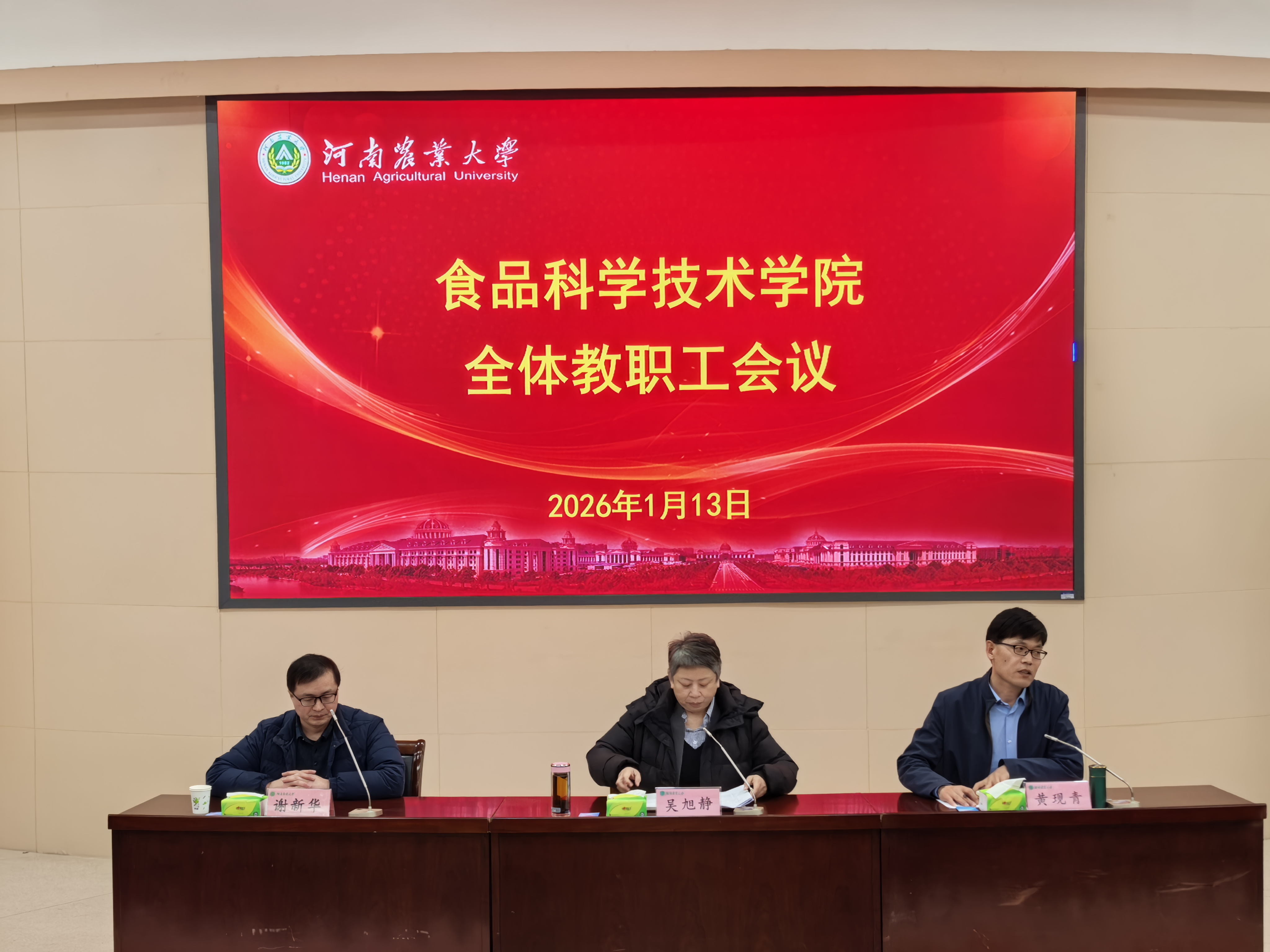 (通讯员 王洁)1月13日下午,食品科学技术学院全体教职工大会在文化路校区300人报告厅召开。学院领导班子成员及全体教职工参加会议。会议由学院党委书记吴旭静主持。