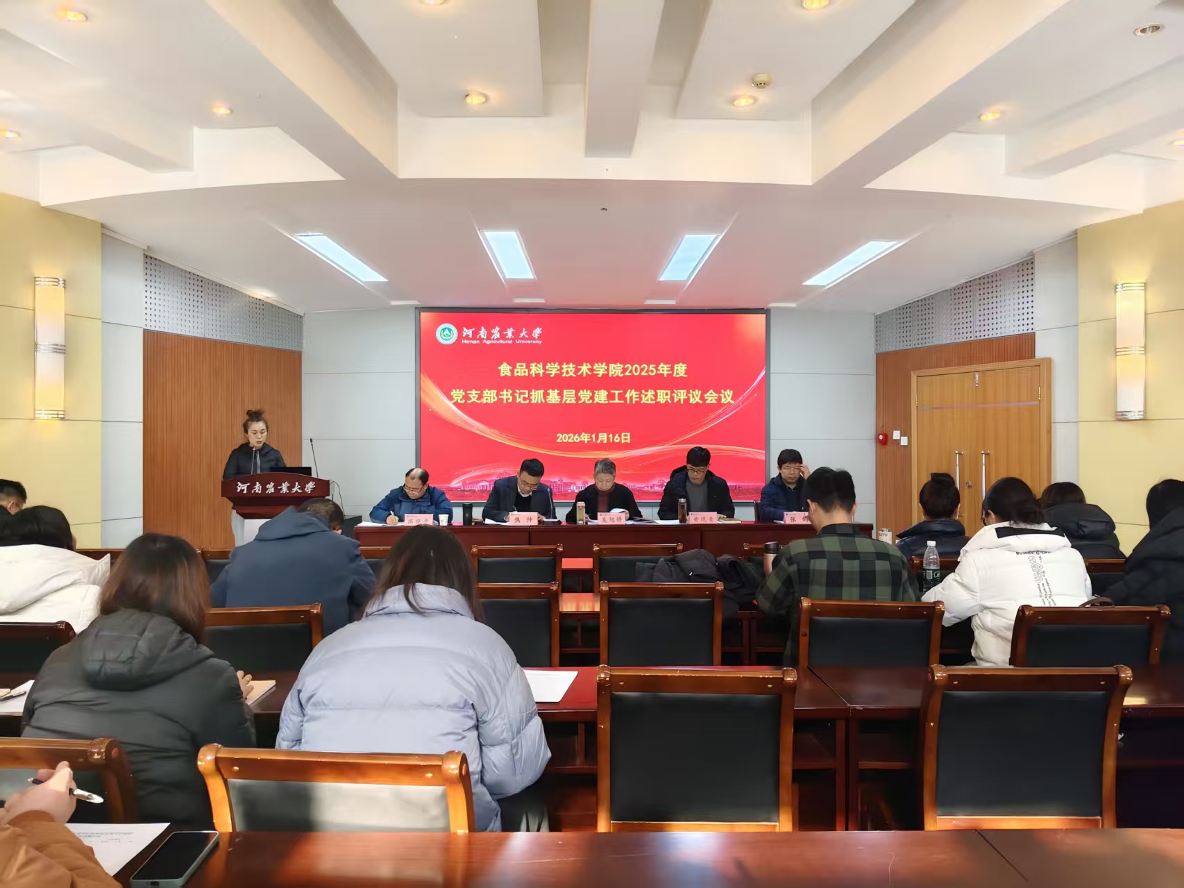 (通讯员 陈翔)1月16日下午,食品科学技术学院于文化路校区大礼堂100人报告厅召开2025年度党支部书记抓基层党建工作述职评议会议。学院党委委员、班子成员,中层干部,各党支部书记参加会议。院党委书记吴旭静主持会议。