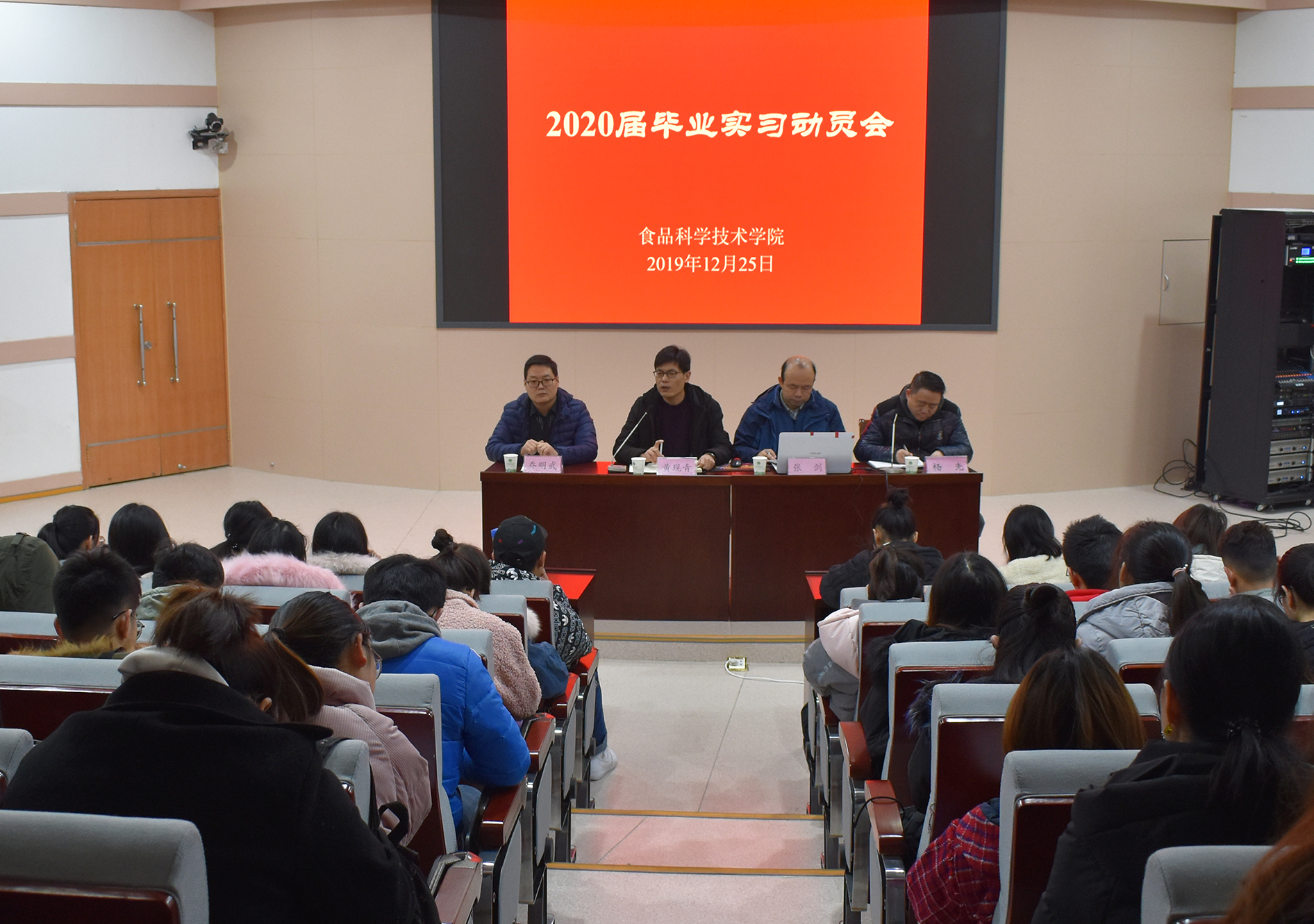 12月25日,河南农业大学食品科学技术学院于文化路校区三百人报告厅召开2020届毕业生实习动员会。副院长黄现青、院教学秘书张剑、实验室中心副主任乔明武、院团委副书记杨光出席会议,16级全体学生参加会议。