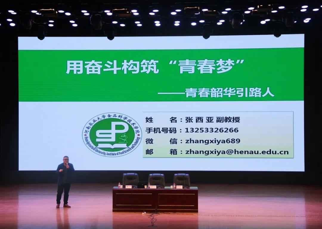 首先,张剑介绍了我校为社会输送了大批优秀人才,以及我院为河南省食品行业做出了突出贡献。接着,梁栋分享了自己求学经历及个人感悟,结合自身经历阐述了“知识改变命运”的重要性,并根据自己的学术知识介绍了对食品专业的理解与认识,帮助同学们更深刻地了解食品专业。随后,张西亚通过示意图的形式讲述了自己的求学历程,并分析了食品行业的现状和食品专业的就业方向,强调同学们要培养多方面的能力。最后,张西亚与同学们互动交流,现场为同学们答疑解惑,帮助同学们树立目标,更好地规划大学生活。