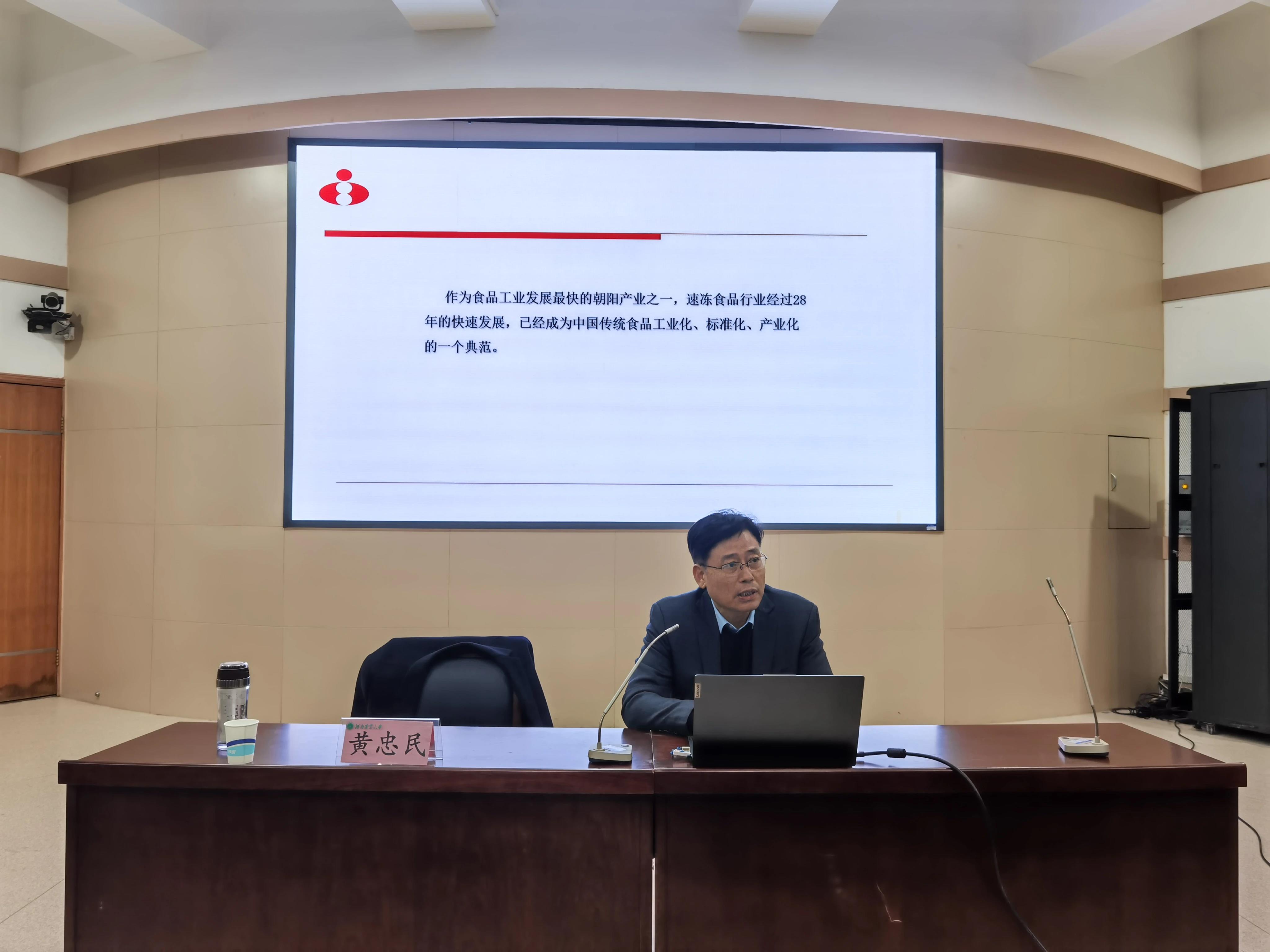 针对速冻食品领域存在的对接问题和未来发展趋势,黄忠民向同学们分享了自己的看法和感受。我国行业机械化水平不断升高、行业标准法规基本完善,预示着速冻产业是一个朝阳产业、前景广阔的产业。最后,他展示了我院学科情况与科研成果,并对同学们提出期望。