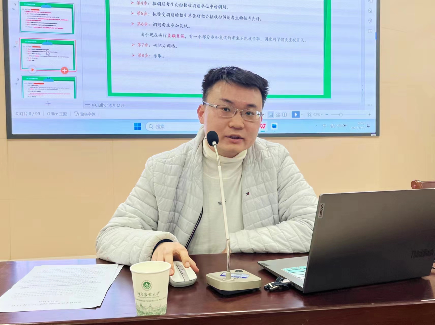 (通讯员 刘晓梦)为引导2023届毕业生积极响应祖国号召,携笔从戎,报效国家。3月13日,我院于文化路校区300人报告厅召开毕业生征兵入伍动员会。院党委组织员陈翔出席会议,19级全体学生参加,此次会议由20级退伍学生王晨主讲。