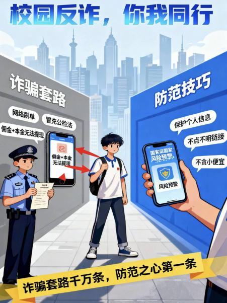 同时,学院重点关注新生及家庭经济困难学生等关键群体,通过一对一谈心交流、动态信息追踪等举措,强化精准预警与帮扶机制,全方位构建校园反诈防护网络,确保反诈教育无遗漏、全覆盖。