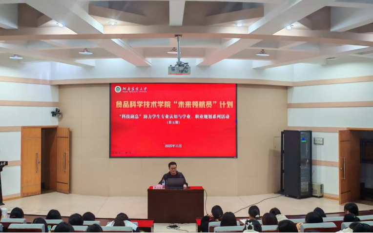 (通讯员 赵鑫宇)为帮助2025级新生深入了解食品保鲜领域的前沿知识与行业发展趋势,搭建从理论认知到产业实践的桥梁,11月12日,食品科学技术学院依托“未来领航员”计划,在文化路校区300人报告厅举办了“行业前沿”讲座助力新生专业认知。院科技副总、副教授李占超以《木质素类衍生材料在食品保鲜中的创新应用》为题,为全体新生带来了一场融合行业洞察与实践启发的专题分享。