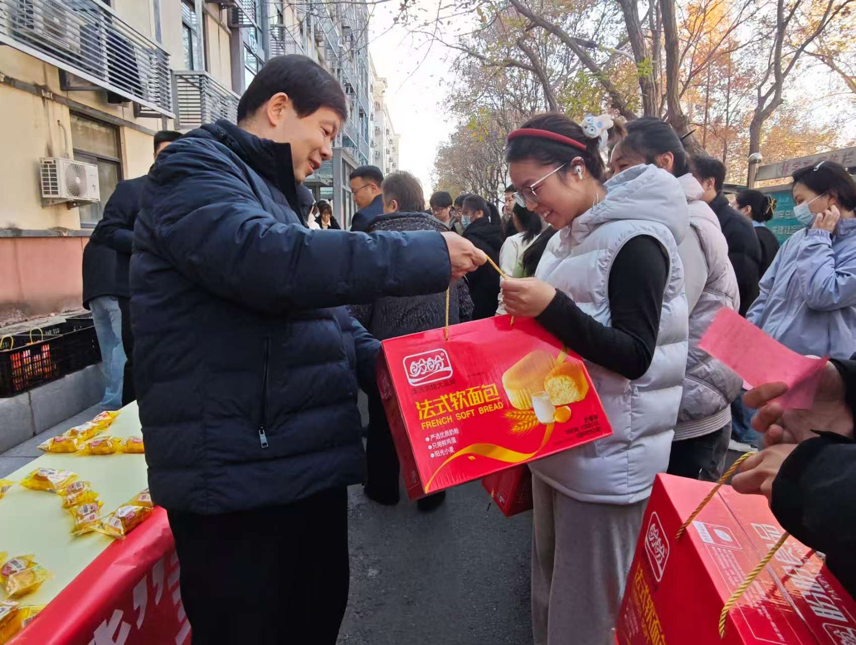 (通讯员 刘梦佳)冬日寒意渐浓,考研冲刺的号角已然吹响。为给奋战在备考一线的学子们注入温暖力量,缓解备考压力,11月21日,我院于文化路校区12号楼楼下隆重举办考研送温暖活动。院党委书记吴旭静、党委副书记焦帅、副院长张剑、谢新华、团委书记路平、党委组织员陈翔、团委副书记张金龙及22级全体考研学子共同参与了此次活动。