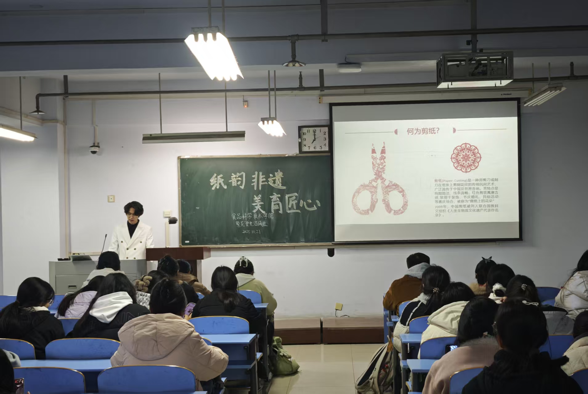 (通讯员  顾钧涵)红纸裁秋韵,匠心传非遗。为深度挖掘剪纸艺术的非遗文化内核,落实美育育人目标,搭建传统艺术交流平台,2025年11月27日,我院繁花“食”光古风社以“纸韵非遗,美育匠心”为主题在文化路校区推广楼207举办非遗剪纸美育课堂活动,吸引众多热爱传统艺术的学子踊跃参与。