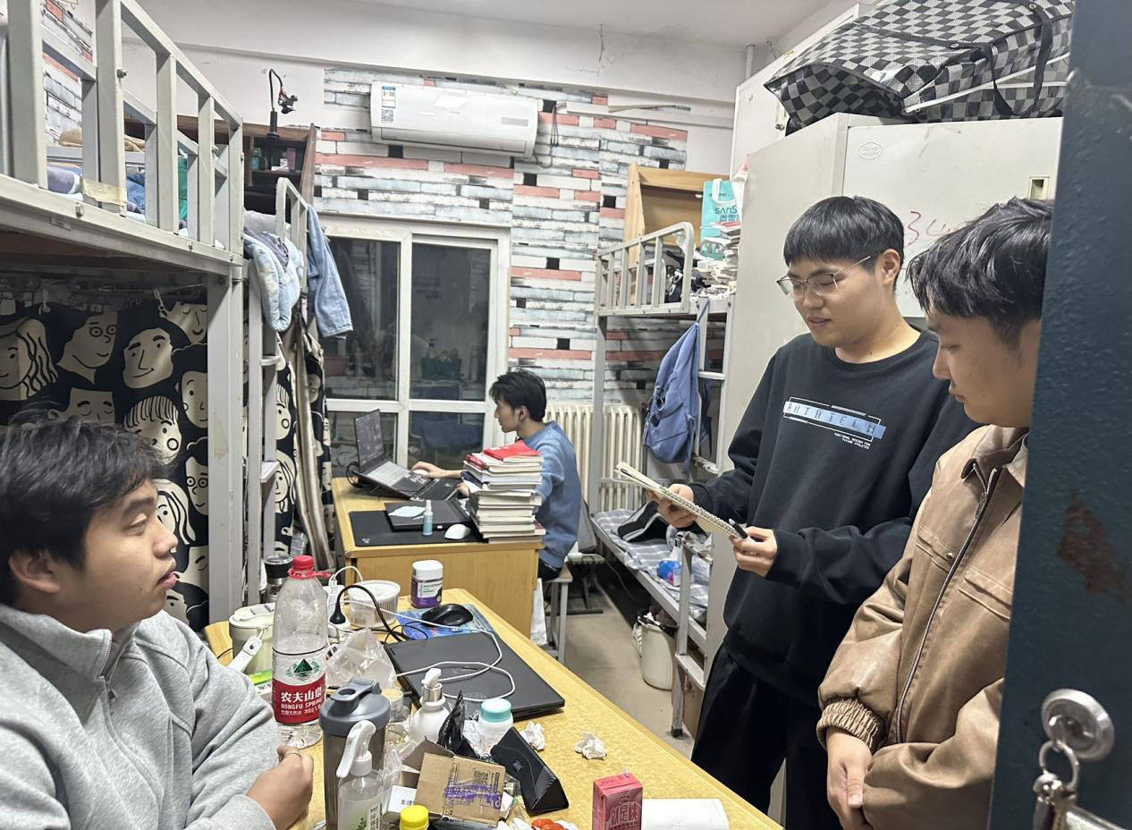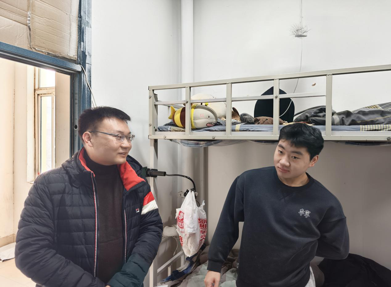 12月9日至12日,院团委书记路平、党委组织员陈翔、团委副书记张金龙、辅导员喻颢如、张泽群、银峰深入各年级宿舍,开展“安全无死角、卫生全覆盖”的双重排查。在排查中,老师们针对上次发现的问题,查看同学们的整改情况,并强调宿舍严禁使用违规大功率电器和食品垃圾要及时清理,引导大家养成整洁、健康的生活习惯。排查期间,老师们格外关注考研学生和四六级考生的备考状态与生活需求,详细询问复习进度、冬季供暖适配情况,叮嘱大家合理安排作息、劳逸结合;对于全体同学期末备考,老师们给出针对性建议,提醒大家要制定科学复习计划,同时着重强调要诚信考试,引导大家树立诚信应考意识,守住学业底线。此外,老师们还主动倾听同学们备考期间的心理压力与生活困难,耐心开展考前心理疏导,缓解焦虑情绪,让严格排查与暖心关怀同步传递,助力同学们轻装上阵迎战考试。