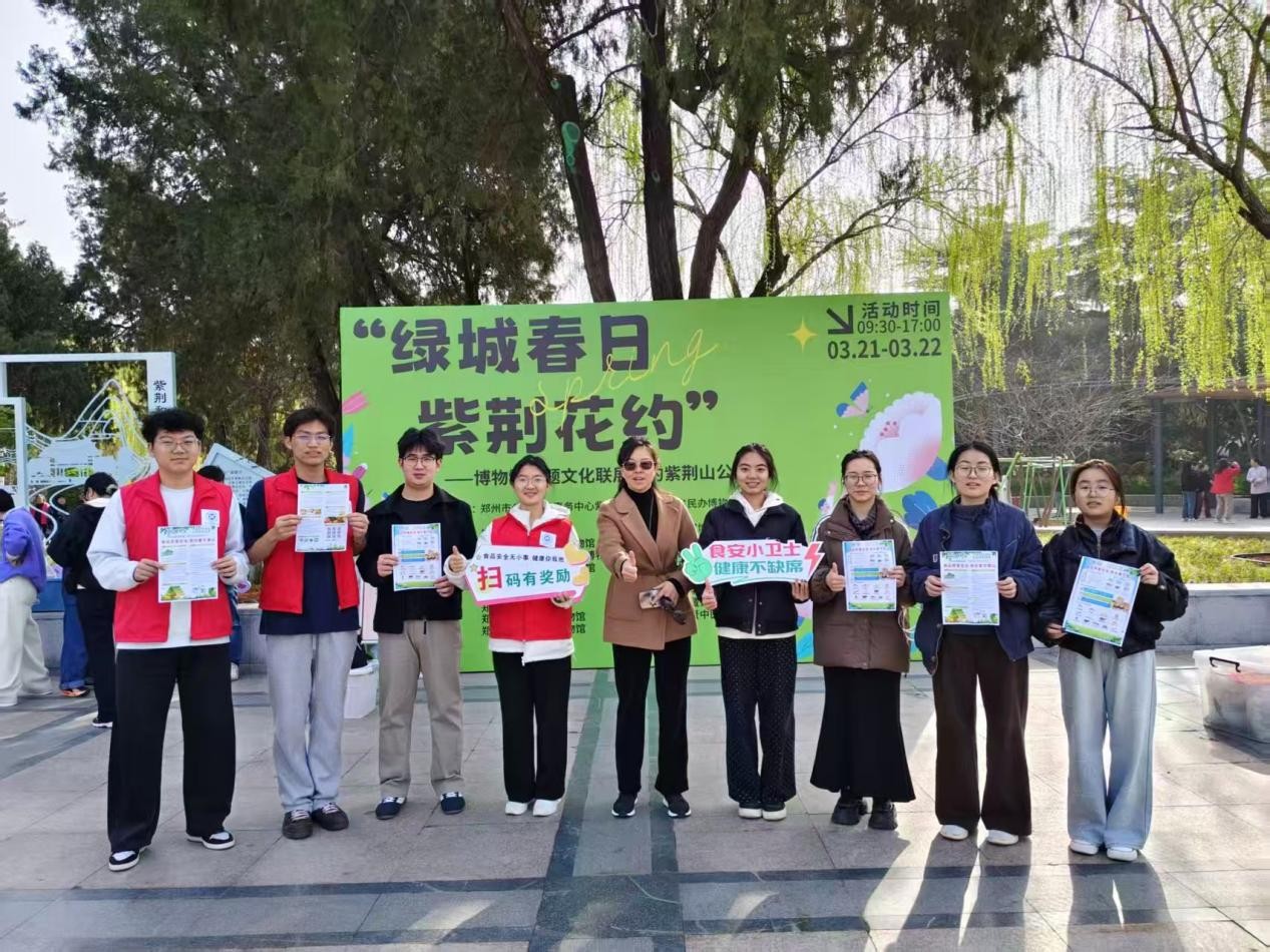 (通讯员 张秋会)食安科普沐春风,健康守护惠民生。在紫荆山公园第十八届紫荆花展暨第三届紫荆文化展期间我院张秋会教授,于3月21日带领2026河南省科学技术协会i科普项目团队教师和“食安强国”社会实践团队的同学们,走进紫荆山公园,开展以“食安守护·健康同行”为主题的社会实践活动,为市民广泛普及食品安全知识,凝聚共识,激活社会共治能力,切实提升公众健康素养。